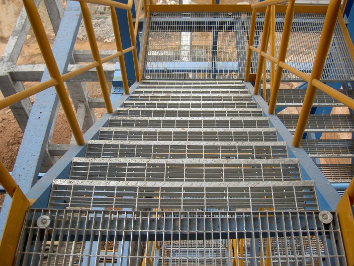 鋼格板是用扁鋼按照一定的間距和橫桿(扭絞方鋼、方鋼、圓鋼、扁鋼等)進(jìn)行交叉排列,并且焊接成中間帶有方形格子的一種鋼鐵制品,鋼格板主要用來做水溝蓋板,鋼結(jié)構(gòu)平臺(tái)板,鋼梯的踏步板等.橫桿一般采用經(jīng)過扭絞的方鋼.鋼格板一般采用碳鋼制作,外表熱鍍鋅,可以起到防止氧化的作用。也可以采用不銹鋼制作.鋼格板具有通風(fēng),采光,散熱,防滑,防爆等性能。